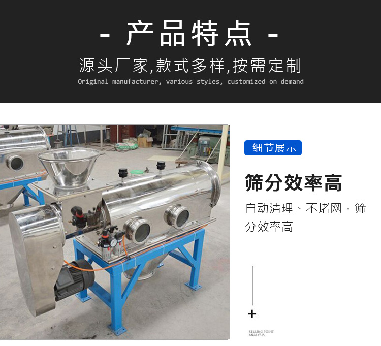 臥式氣流篩是一種常見的篩分設備,用于對粉末和顆粒物料進行分級和篩分的工藝。它采用氣流作為主要篩分力,通過氣流的作用將物料進行分離和分類。
