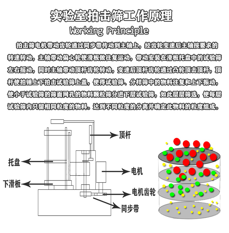拍打式試驗篩是一種實驗室篩分機,也稱為拍擊式試驗篩,通常用于研究機構或大學實驗室的測試儀器。該振動篩還可以配備各種固定裝置,這些固定裝置靈活、牢固,并且可以自動停止。