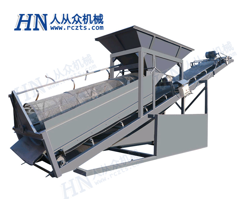大型礦用滾筒篩與地面整體呈一定夾角的傾斜狀態(tài)。篩分滾筒以一定速度旋轉,物料通過篩分滾筒根據不同顆粒大小從上到下分離。滾筒篩的滾筒一般分為幾個部分,可根據具體情況確定。篩孔從小到大排列,每段篩孔直徑相同。