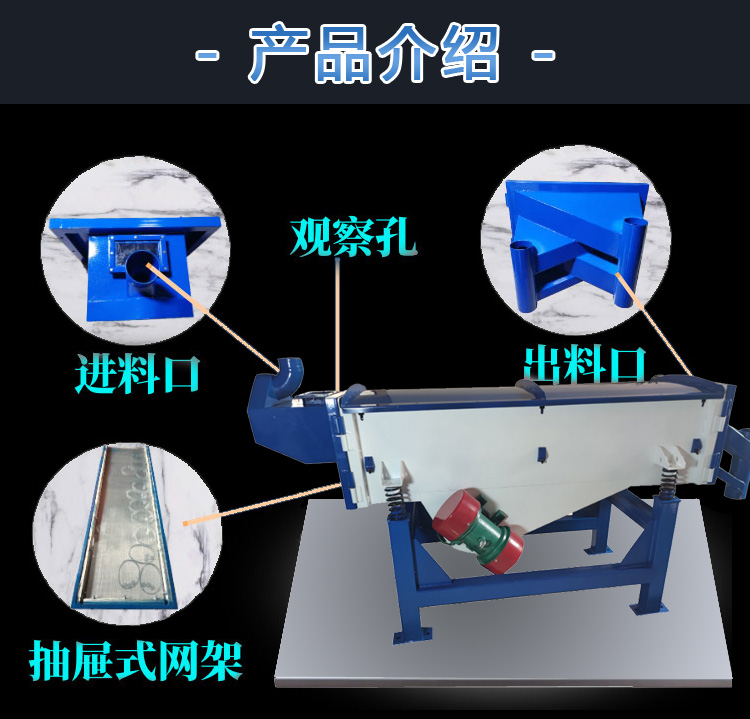 直線振動(dòng)篩迫使物料在篩網(wǎng)上被拋起向前做拋物線運(yùn)動(dòng),以不同的篩網(wǎng)過(guò)濾達(dá)到篩分目的。具有高產(chǎn)低耗、自動(dòng)卸料等特點(diǎn),適合流水線作業(yè)。