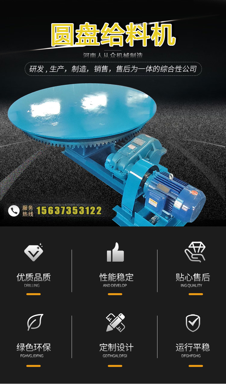 座式圓盤喂料機又稱圓盤給礦機,主要功能是給其他設(shè)備提供料物供應,使用圓盤給料機能夠讓物料均勻的進入一個設(shè)備從而讓下一道工序可以正常工作,節(jié)省勞動力,而且保護了設(shè)備的性能,延長整個生產(chǎn)線設(shè)備的使用壽命。圓盤給料機,是選礦設(shè)備不可或缺的配套產(chǎn)品。