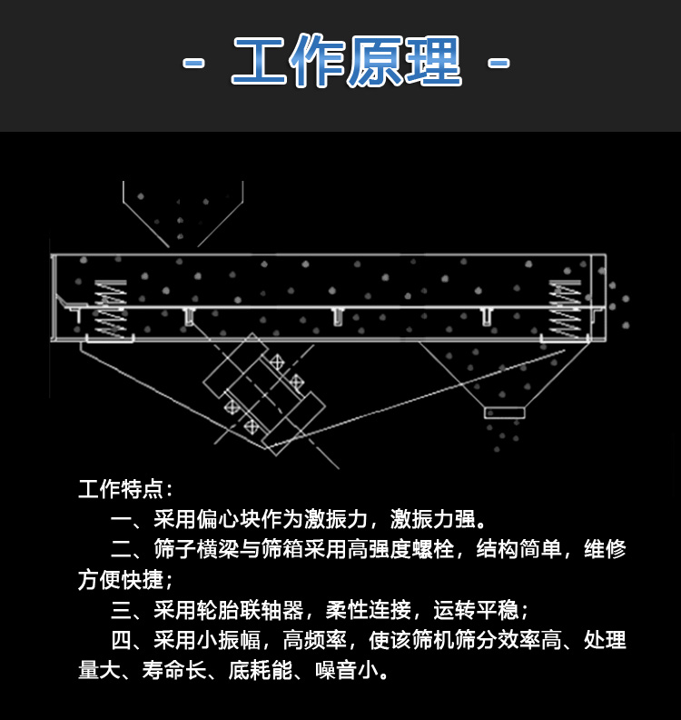 小型顆粒振動篩是利用振動電機迫使物料在篩網上定向拋物線運動,通過多層篩網可產生不同規格的物料,具有高產低耗、自動卸料等特點,適合流水線作業。